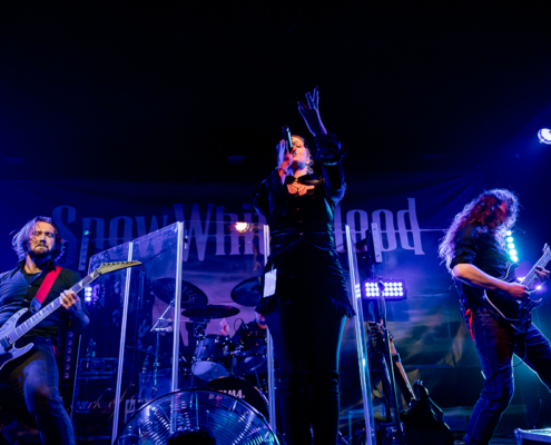 Mit Snow White Blood folgte einer der bekanntesten Namen der Szene – und sie lieferten ab. Die Band brachte eine geballte Ladung Energie auf die Bühne, harmonierte perfekt miteinander und verwandelte das JUZ in einen vibrierenden Klangraum. Songs wie „Lullaby for the Undead“, „Open Sesame“, „Alone Up High“, „Seherazade“ und „Nevermore“ sorgten für ausgelassene Stimmung und viel Bewegung im Publikum. Ein Auftritt, der beweist, warum sie in der Symphonic-Metal-Szene fest etabliert sind.