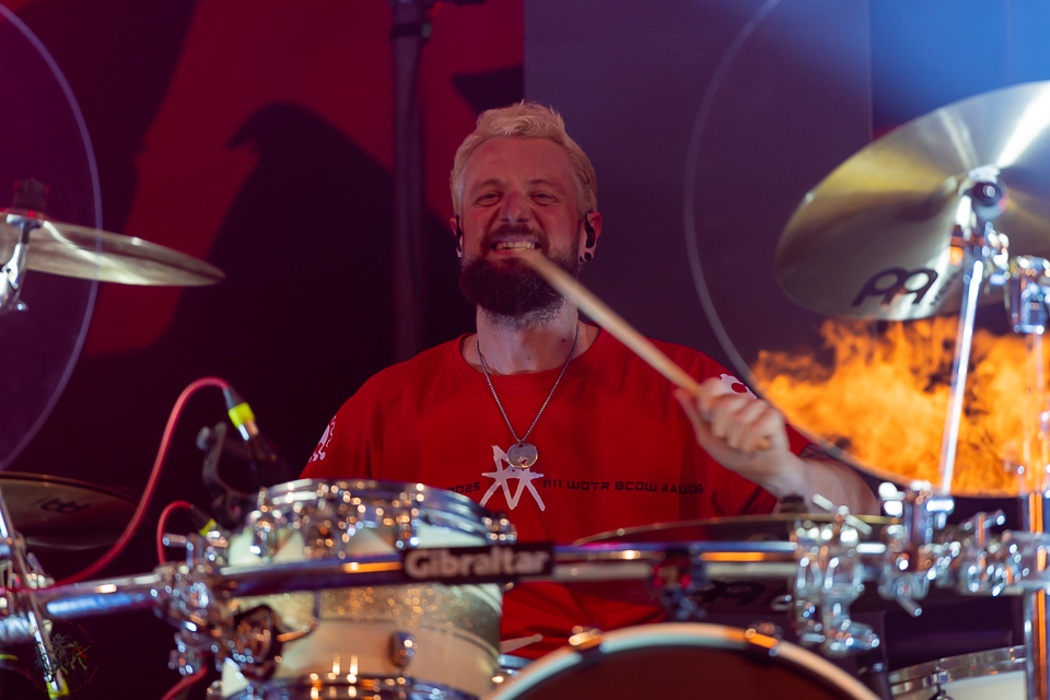 Einer der stärksten Momente des Abends folgt mit „Double Trouble“, gemeinsam performt mit Anna Brunner von League Of Distortion – kein reines Feature, sondern sichtbare Verbundenheit. Ein weiteres Drum-Solo, eingeleitet vom Intro von „Blind“ (Korn), steigert die Spannung, bevor „Who I Never Meant To Be“ emotional nachwirkt.