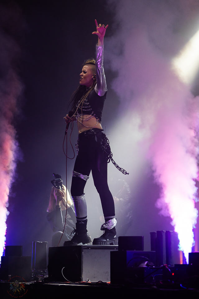 Mit „Suck My Blood“ und „Wolf Or Lamb“ zeigen League Of Distortion ihre düstere, industrielle Seite, während „Rebel By Choice“ und „I’m a Bitch“ klare Statements setzen – laut, selbstbewusst und kompromisslos. „Crucify Me“ steigert die Intensität noch einmal, bevor mit „L.O.D.“ ein Set endet, das sich nicht wie Support, sondern wie ein eigenständiger Angriff anfühlt.