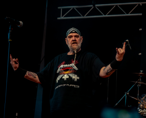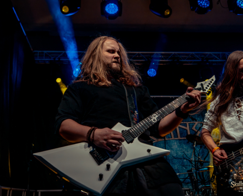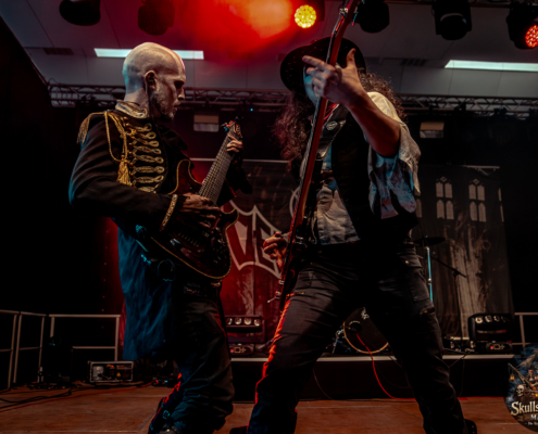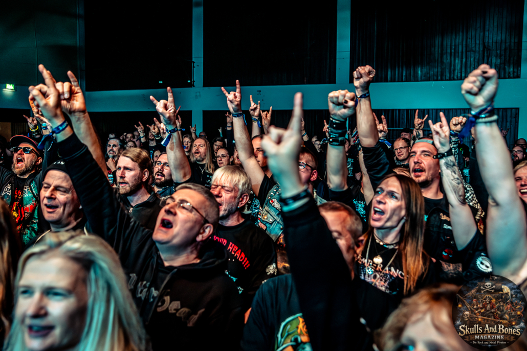 Der Sonntag begann nicht minder fröhlich, obgleich so mancher mit schwerem Kopf, doch breitem Grinsen erschien. Die Gemeinschaft war gewachsen, man rückte enger zusammen, teilte Bier, Geschichten und Gelächter. Gutter Bones, kurzfristig an Bord gekommen, eröffneten den Tag mit schmutzigem Rock’n’Roll, roh wie eine Hafenschlägerei. Vansind ließen eisige Kälte durch die Halle ziehen, ehe Temperance mit Harmonie und Glanz wieder Wärme und Erhabenheit brachten. Skytribe beschworen alte Götter und Naturgewalten, während Sellsword mit kampfeslustigem Auftreten den Geist der Schlacht heraufbeschworen.