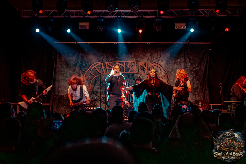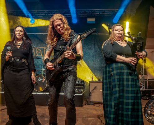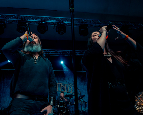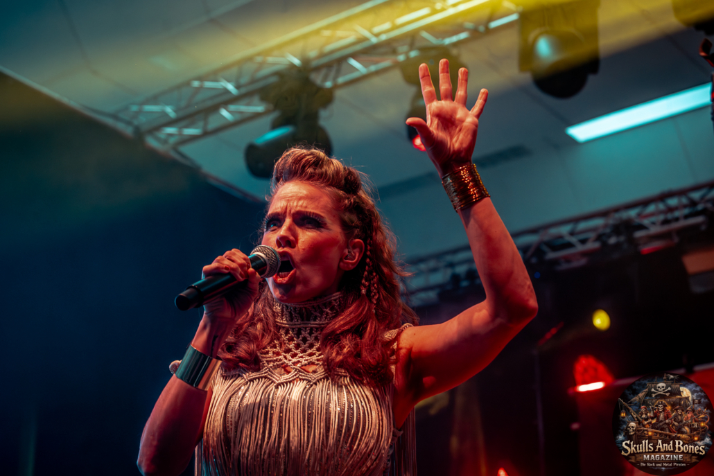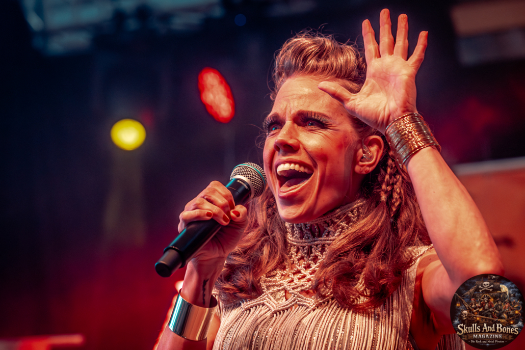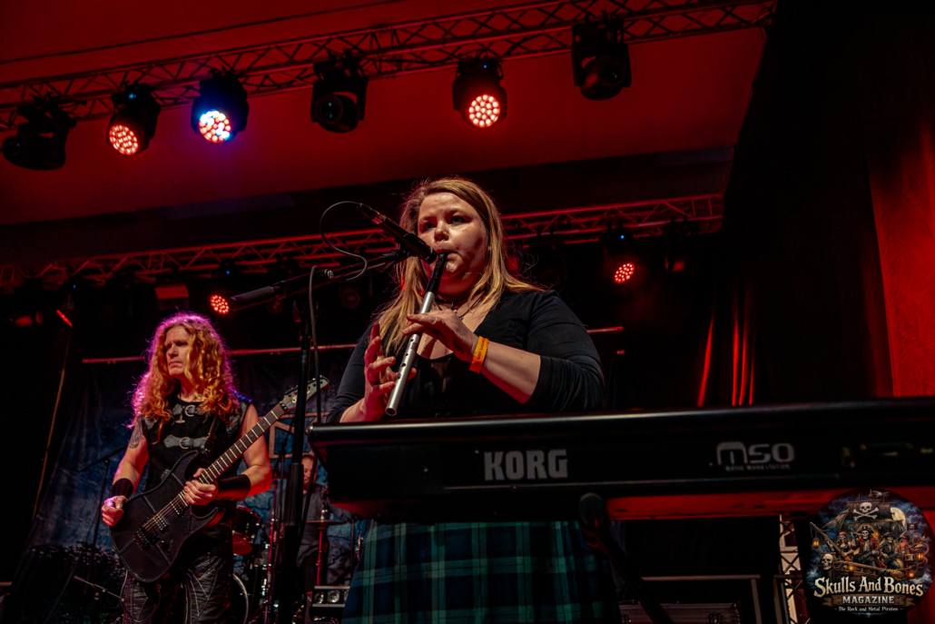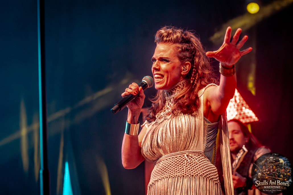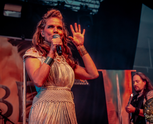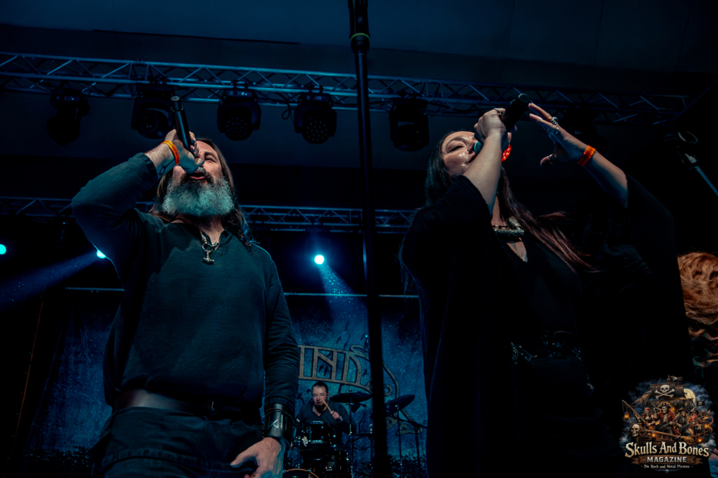 Mit Battle Tales begann das Gelage, heldenhaft und kampfeslustig, ehe Fabula Rasa alte Geschichten und schelmische Weisen in die Halle trugen. Man sang, man tanzte, und die gute Laune griff um sich wie ein Lauffeuer. Timeless Rage spannten mit symphonischer Wucht den Bogen zwischen Anmut und Zorn, während Elettra Storm mit donnernden Riffs und kraftvoller Stimme wie ein Gewitter über das Volk hinwegzogen. Spätestens bei Skull & Crossbones war die Halle ein einziges wogendes Meer aus Fäusten, fliegenden Mähnen und überlaufenden Krügen. Mit epischer Größe führten Serenity das Volk weiter hinauf, erzählten von Rittern, Königen und alten Reichen und ließen keinen Zweifel daran, dass dieser Abend Großes versprach.