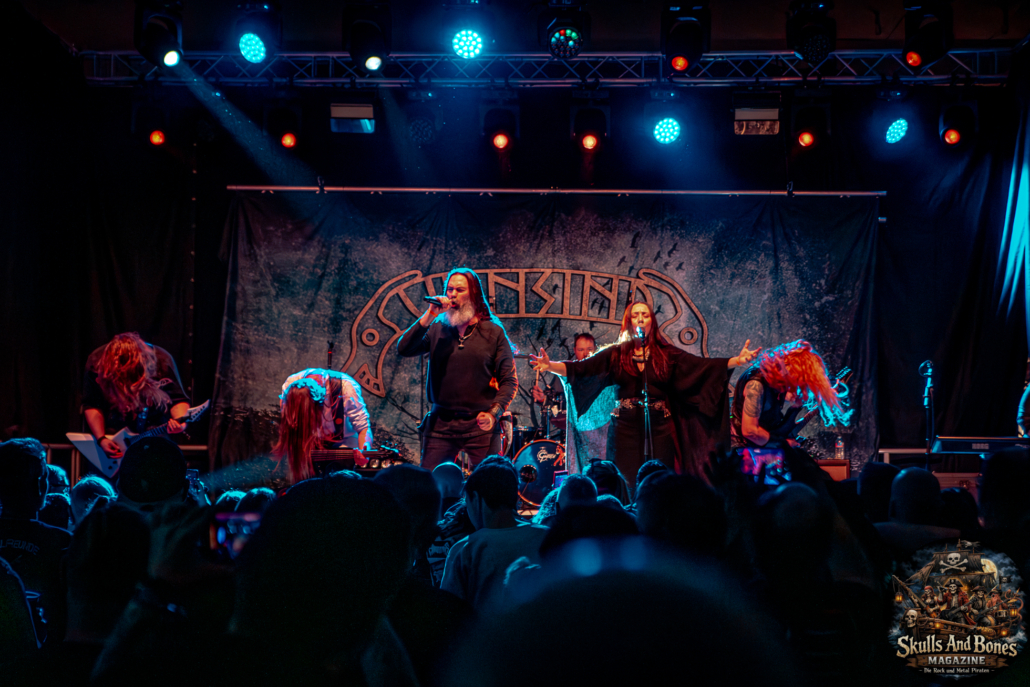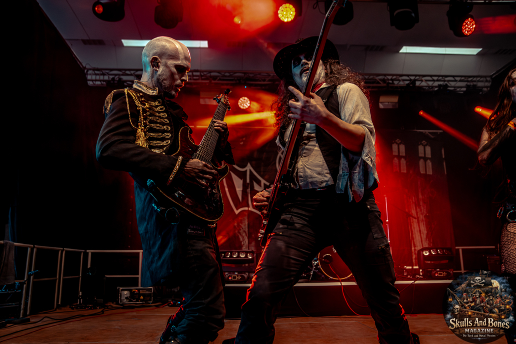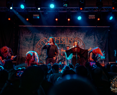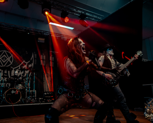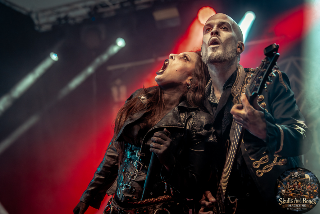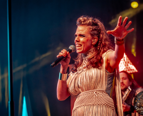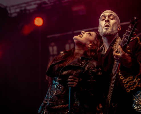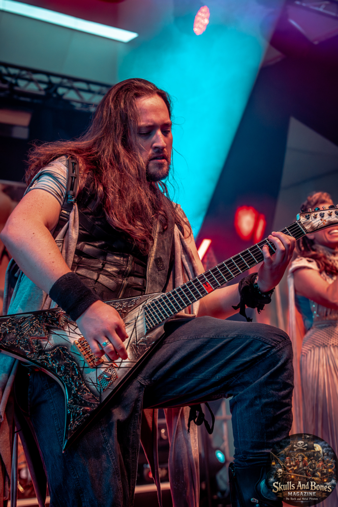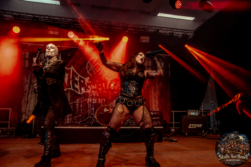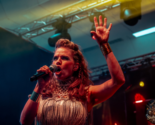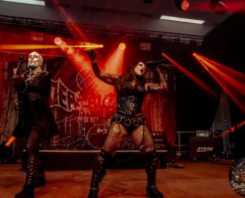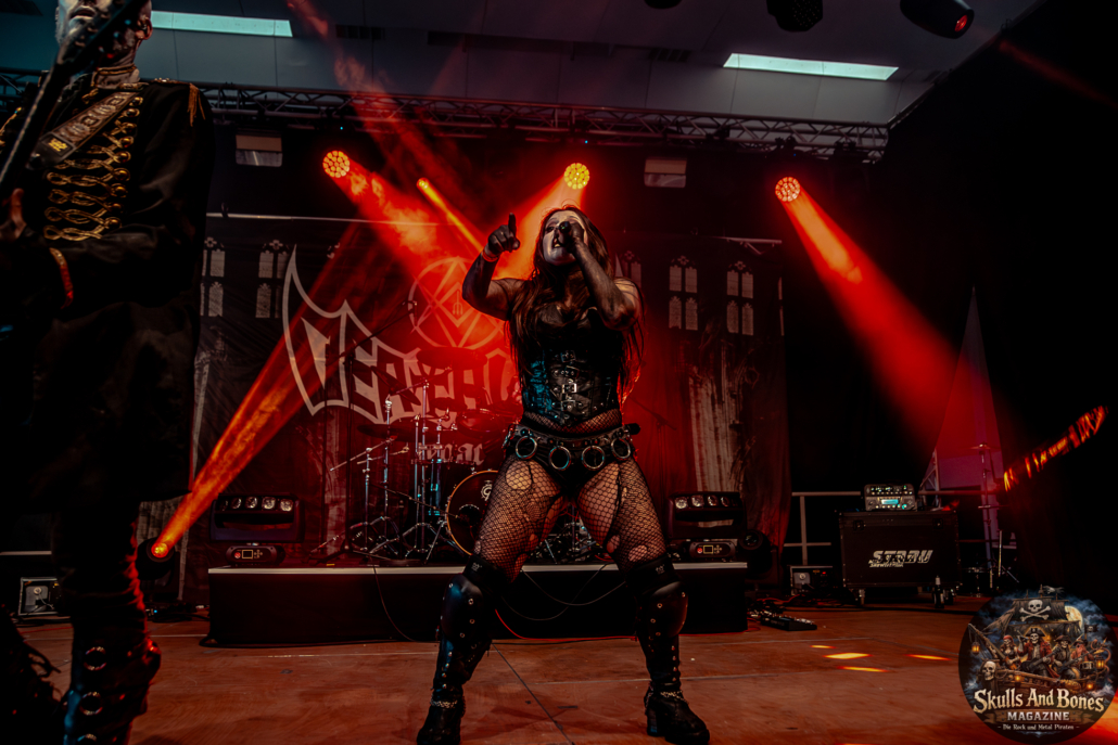 Mit Battle Tales begann das Gelage, heldenhaft und kampfeslustig, ehe Fabula Rasa alte Geschichten und schelmische Weisen in die Halle trugen. Man sang, man tanzte, und die gute Laune griff um sich wie ein Lauffeuer. Timeless Rage spannten mit symphonischer Wucht den Bogen zwischen Anmut und Zorn, während Elettra Storm mit donnernden Riffs und kraftvoller Stimme wie ein Gewitter über das Volk hinwegzogen. Spätestens bei Skull & Crossbones war die Halle ein einziges wogendes Meer aus Fäusten, fliegenden Mähnen und überlaufenden Krügen. Mit epischer Größe führten Serenity das Volk weiter hinauf, erzählten von Rittern, Königen und alten Reichen und ließen keinen Zweifel daran, dass dieser Abend Großes versprach.