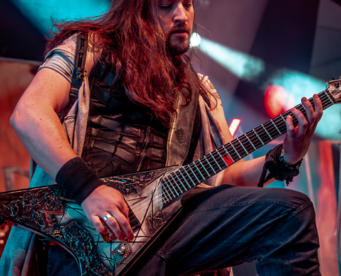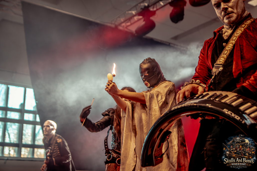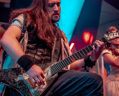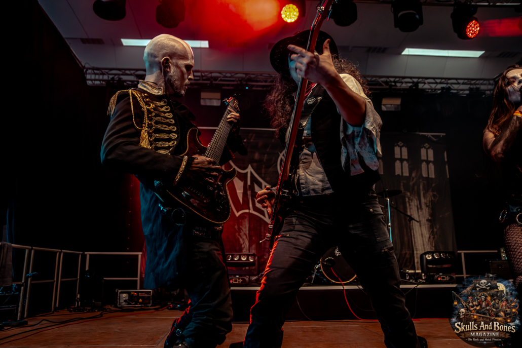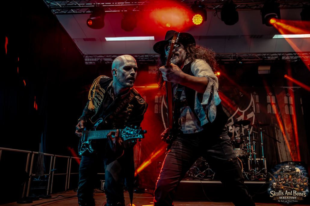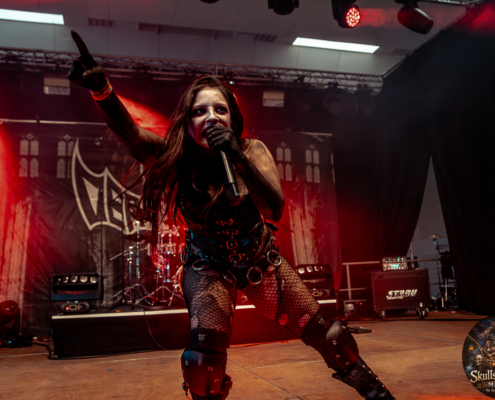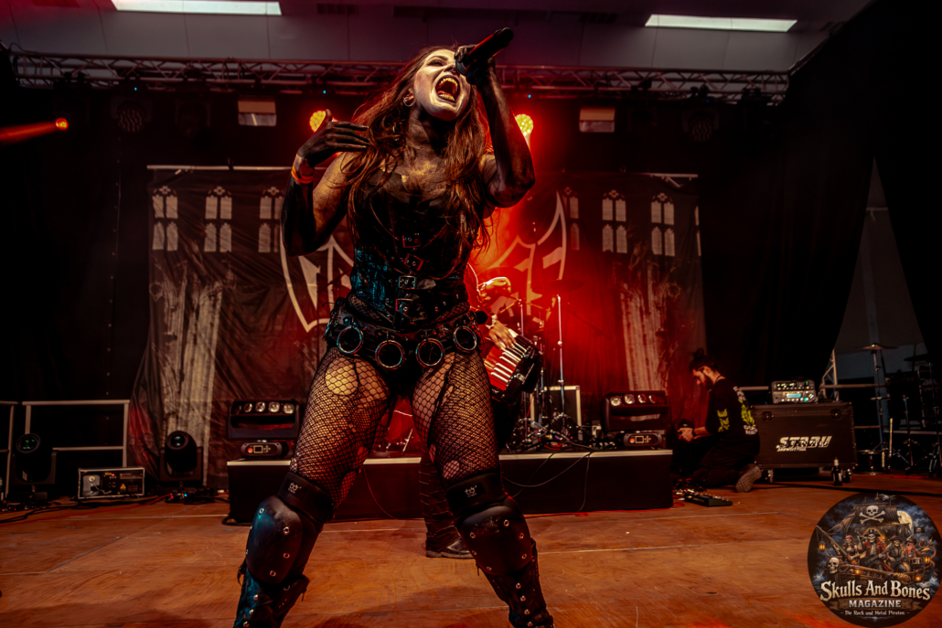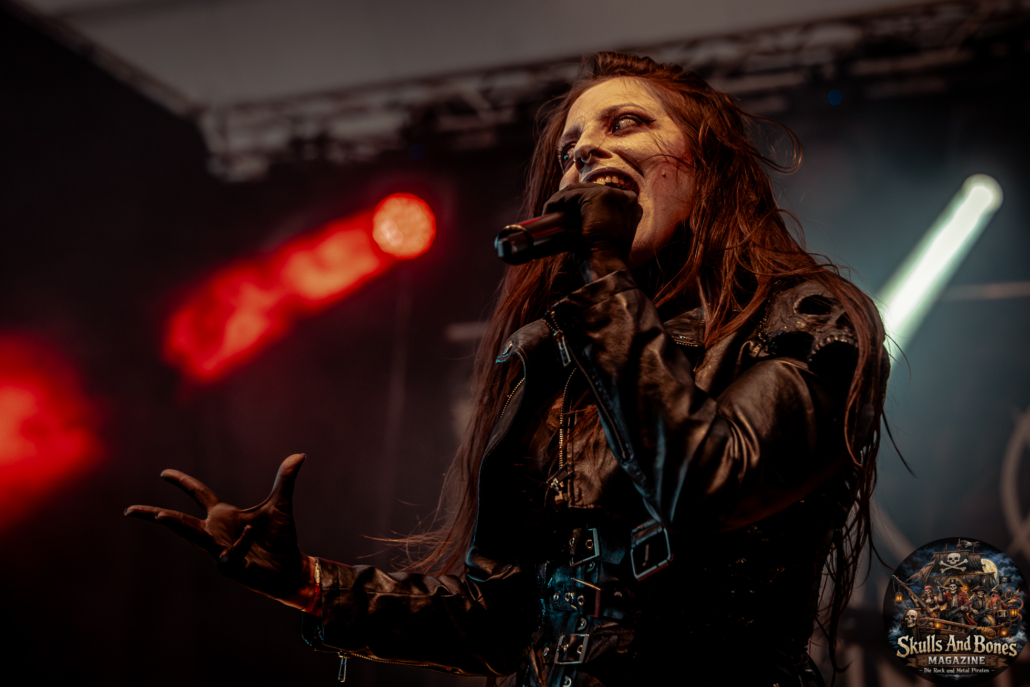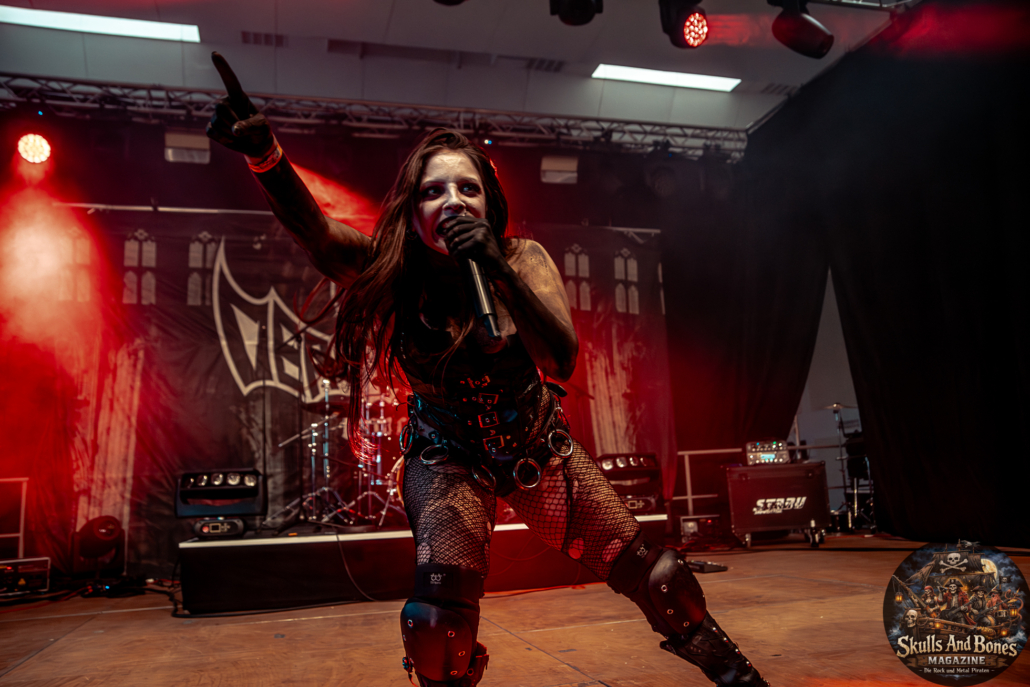 Mit Battle Tales begann das Gelage, heldenhaft und kampfeslustig, ehe Fabula Rasa alte Geschichten und schelmische Weisen in die Halle trugen. Man sang, man tanzte, und die gute Laune griff um sich wie ein Lauffeuer. Timeless Rage spannten mit symphonischer Wucht den Bogen zwischen Anmut und Zorn, während Elettra Storm mit donnernden Riffs und kraftvoller Stimme wie ein Gewitter über das Volk hinwegzogen. Spätestens bei Skull & Crossbones war die Halle ein einziges wogendes Meer aus Fäusten, fliegenden Mähnen und überlaufenden Krügen. Mit epischer Größe führten Serenity das Volk weiter hinauf, erzählten von Rittern, Königen und alten Reichen und ließen keinen Zweifel daran, dass dieser Abend Großes versprach.
